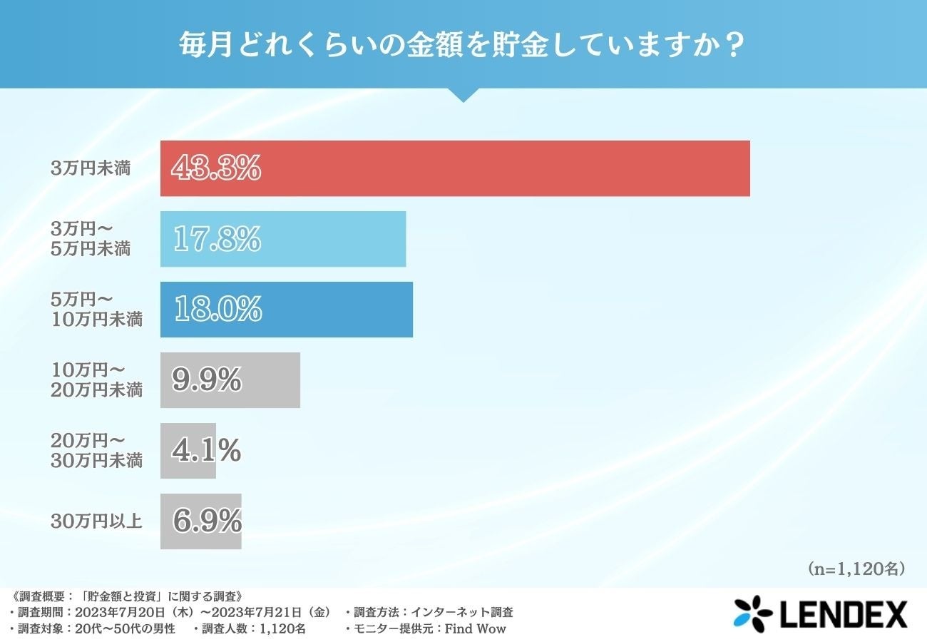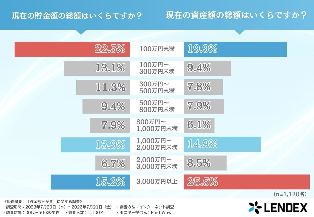 株式会社LENDEX(本社所在地:東京都渋谷区、代表取締役:中村 智)は、20代~50代の男性を対象に、「貯金額と投資」に関する調査を実施しました。