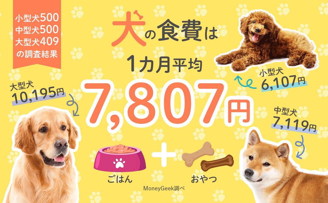 調査の結果、犬の食費の月平均は全種平均で7,807円でした。