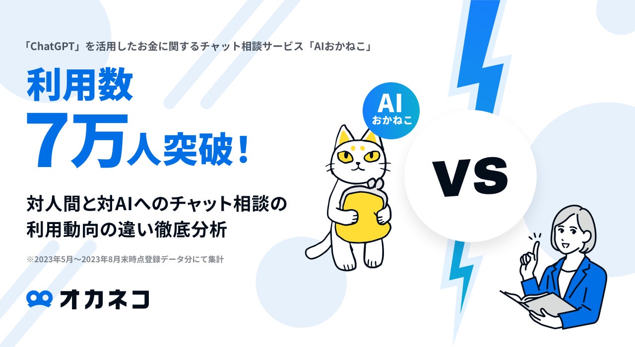 「AIおかねこ」の機能は2023年5月より開始し、約4ヵ月経過した2023年8月末時点で利用数は7万人を突破しています。今回、「AIおかねこ」の利用者の急増を受けて、お金の専門家(オンラインアドバイザー)と「AIおかねこ」で、チャット相談の利用動向にどのような違いがあるのかを調査し、その結果を当社CPO 加々美文康が分析しました。