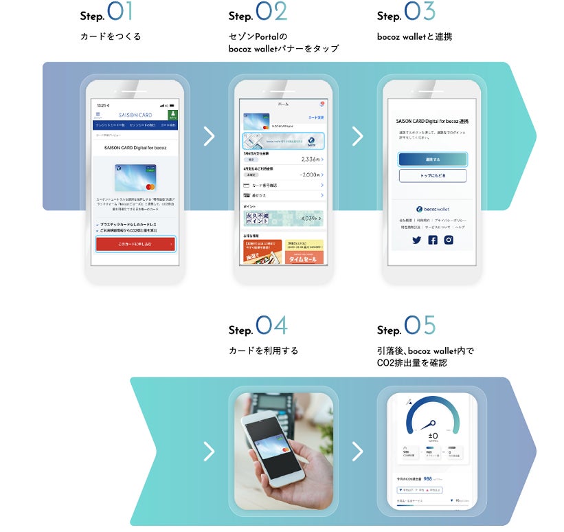 イベントでは、気候変動対策をテーマとしたコンセプトクレジットカード「SAISON CARD Digital for becoz」(以下:becoz card)」や、自分の暮らしのCO2排出量を可視化できる「becoz wallet」を通じて生活者のみなさまにカーボンニュートラルを身近に感じていただける機会を提供いたします。