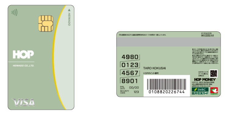今般、滋賀県発祥の平和堂が掲げる近江商人の三方よし(売り手よし、買い手よし、世間よし)の理念を実現すべく、「HOP-VISAカード」を平和堂、商圏のお客さま、地域・環境との関係性の象徴となるカードへとリニューアルいたします。新たな「HOP-VISAカード」は、スタイリッシュなデザインで、お客さまが地域とのつながりを感じながら、お得で安全にご利用いただけるカードとなっております。