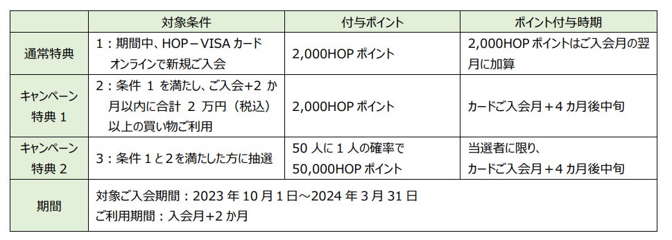 HOP-VISAカードのリニューアルを記念し、「新規ご入会&ご利用で、最大54,000HOPポイントプレゼントキャンペーン」を実施いたします。