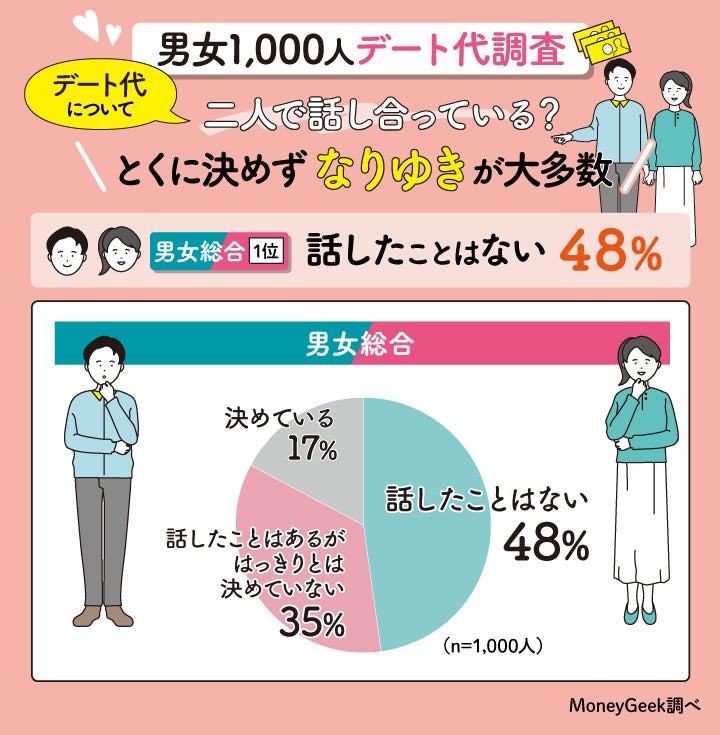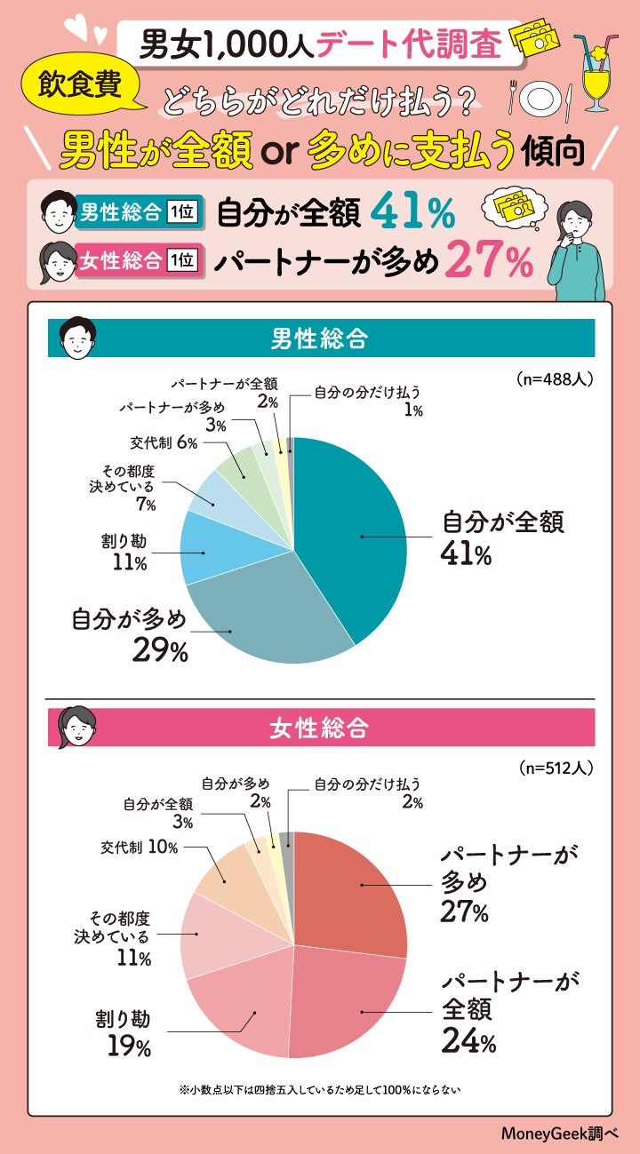 デート代の支払い配分や本音を男女1,000人に調査を実施 「MoneyGeek」にて調査結果を発表