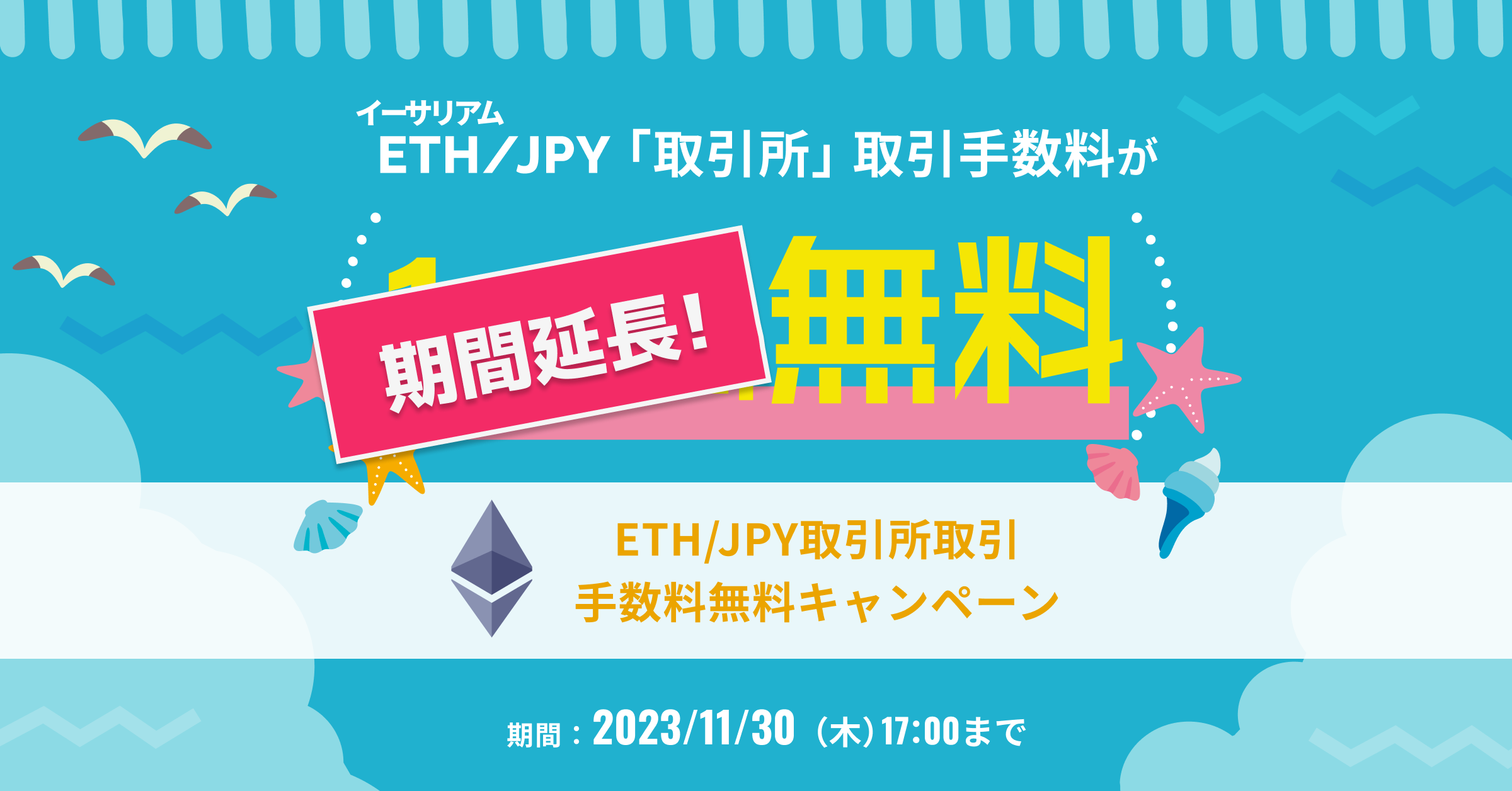 キャンペーン期間中、ETH/JPY取引所取引手数料が無料となります。