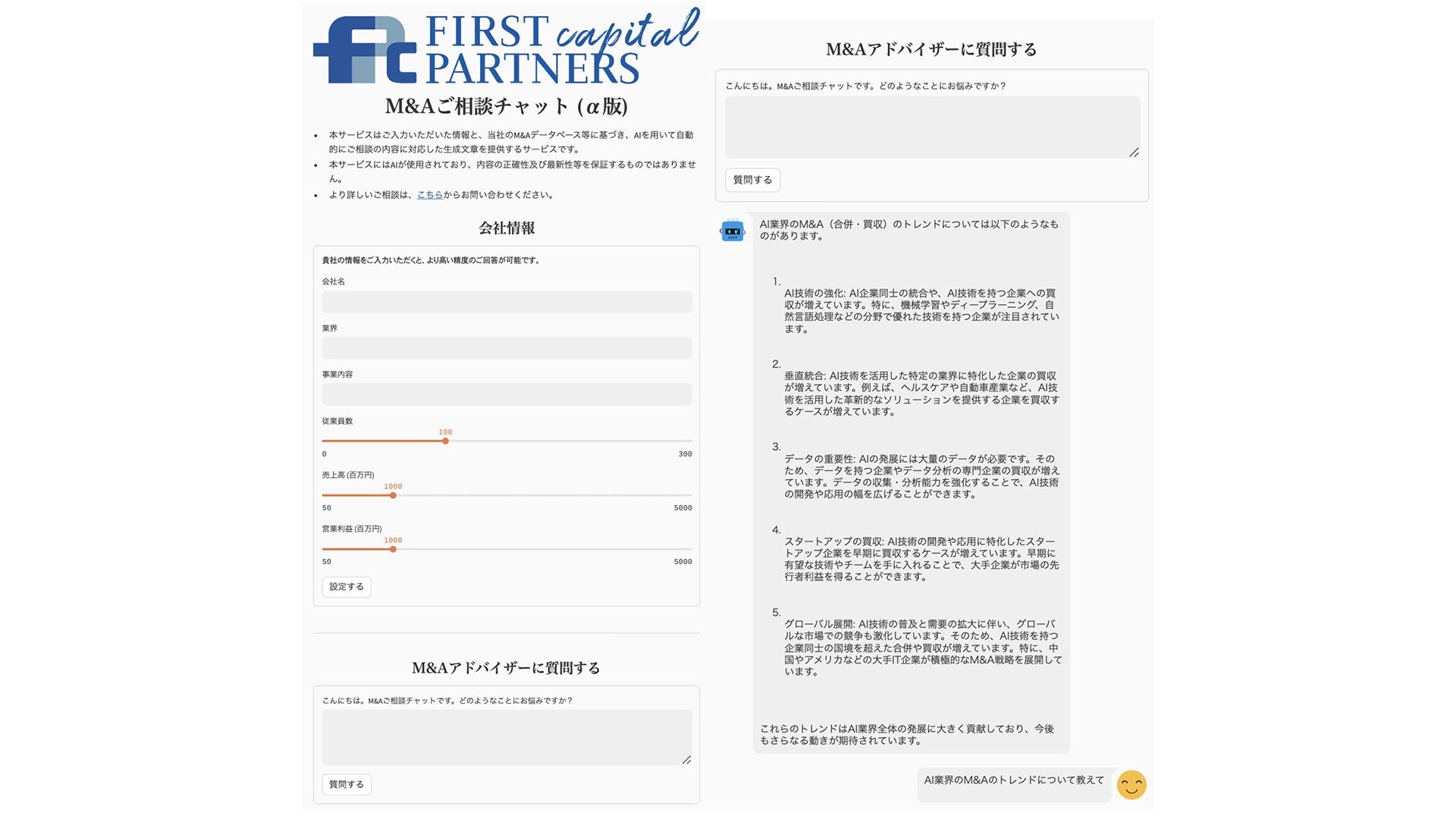 さらに、ChatGPTに用いられるGPTモデルの拡張により、M&Aや事業承継に不安や興味のある経営者の悩みに応答するチャットボットを公開します。