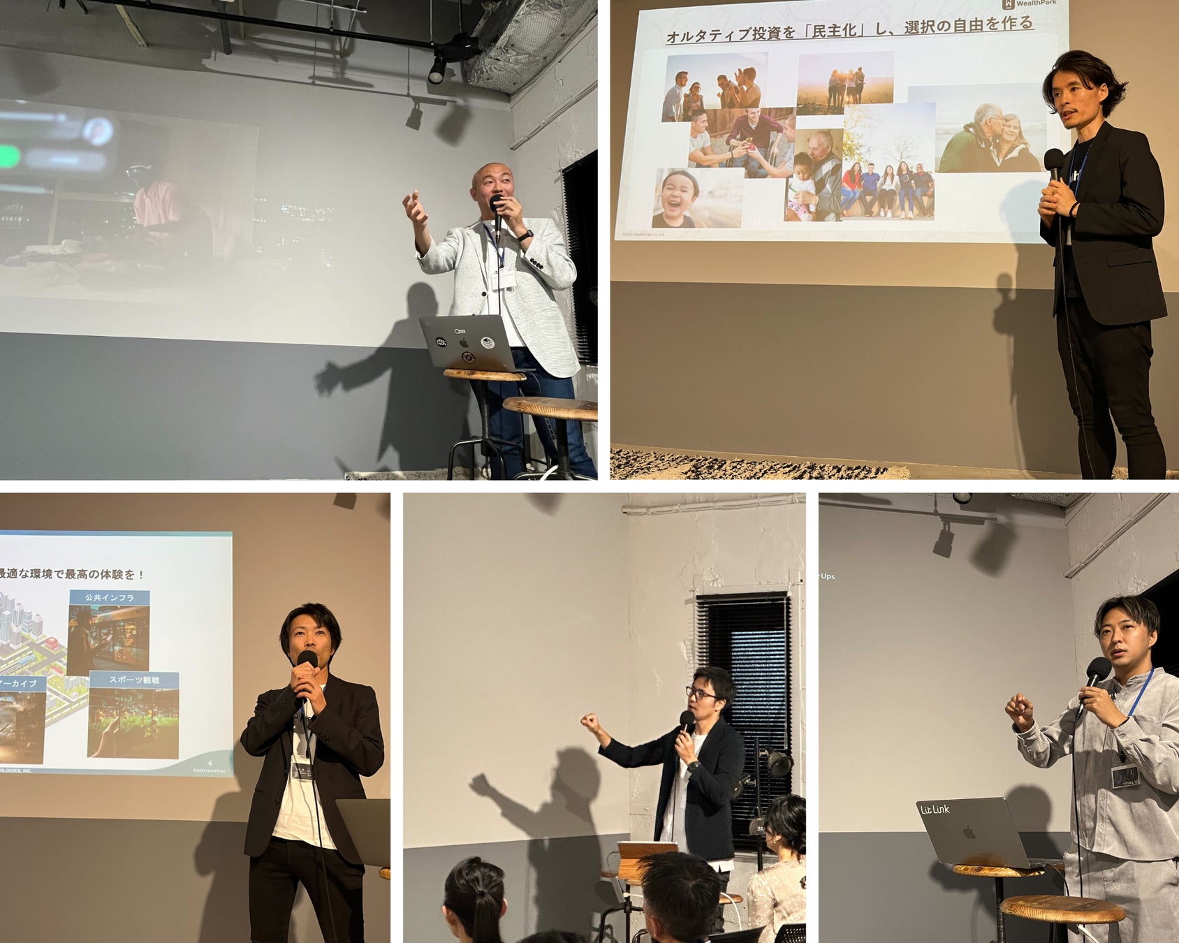 続いて、IGP-VPがジェネラル・パートナーとして運用しているCVCファンドの支援先であるWealthPark株式会社、株式会社オズビジョン、株式会社Psychic VR Lab、TieUps株式会社、プレティア・テクノロジーズ株式会社の各代表者によるピッチを行いました。