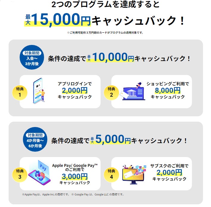 2つのプログラムをあわせて最大15,000円キャッシュバック