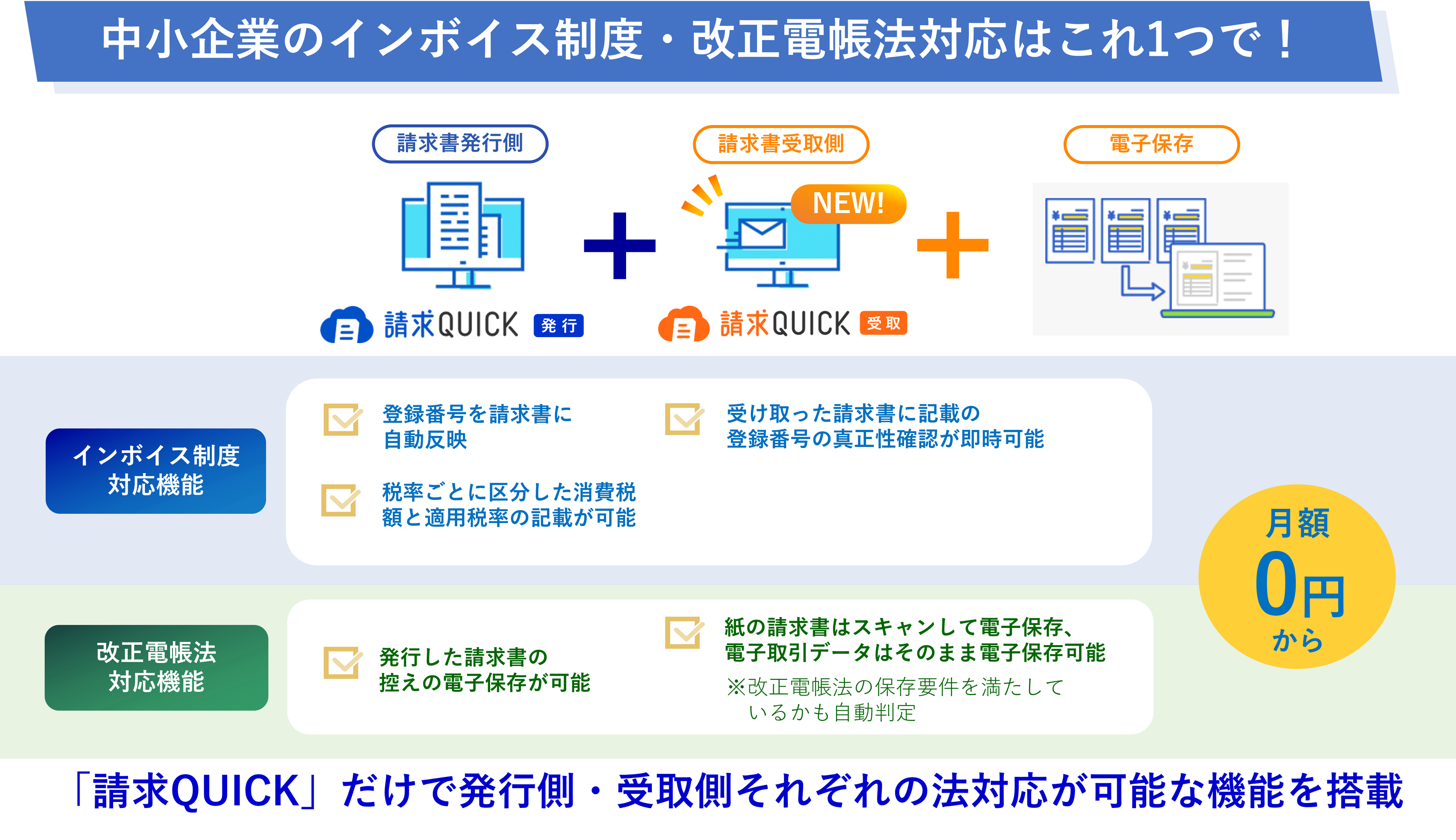 「請求QUICK」は月額無料から使える中小企業のためのインボイス制度・電帳法対応ツール
