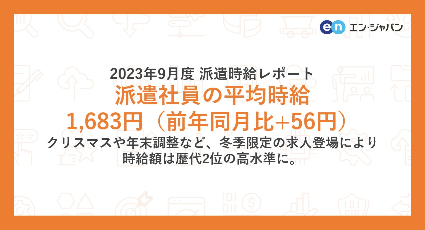 2023年9月度の三大都市圏平均時給は1,683円(前月比-3円・0.2%減、前年同月比+56円・3.4%増)。過去最高時給を記録した2023年8月度に次ぎ、過去2位の高水準となりました。平均時給の上昇には「時期的な求人動向」が大きく影響しています。
