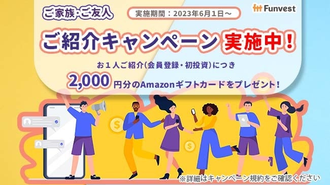 お1人ご紹介(会員登録・初投資完了)につき2,000円分のAmazonギフトカードをプレゼント!