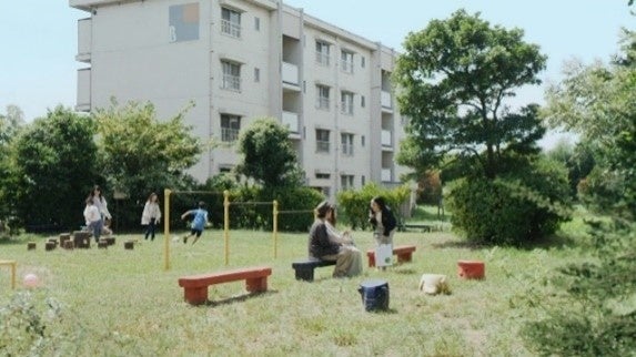 『出産篇』でも、美しい木々を背景に斎藤工さんが優しいまなざしで、公園のベンチに座っていた妊娠中の妻と、妻より出産に緊張している夫をアドバイザーが勇気づける様子を、ファインダーを通して見つめています。最後に優しく微笑む斎藤工さんの姿が印象的なCMです。
