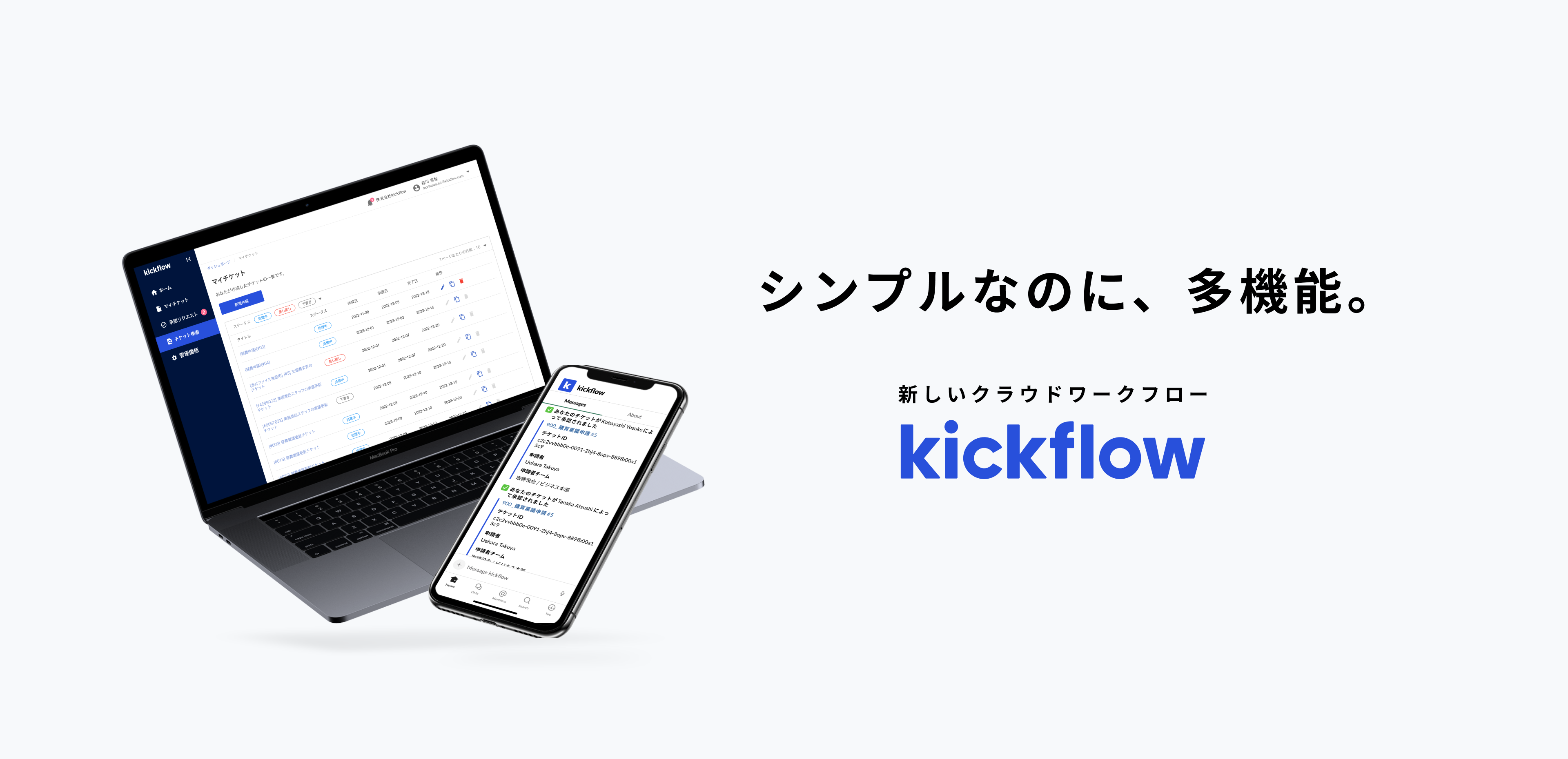kickflowは中堅・大企業向けに開発されたクラウド型稟議・ワークフローシステムです。数百社の課題ヒアリングを通じ、「エンタープライズ企業が一番使いやすい次世代型ワークフローシステム」として誕生しました。