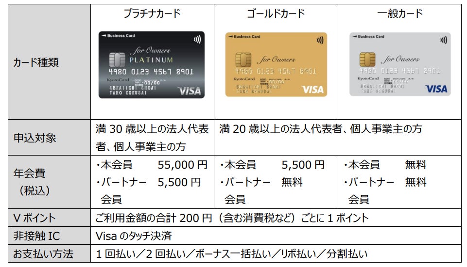 三井住友カード株式会社(本社:東京都江東区、代表取締役社長:大西 幸彦、以下:三井住友カード)と、京都クレジットサービス株式会社(本社:京都府京都市下京区、代表取締役社長:多賀野 博一、以下:京都クレジットサービス)は、2023年10月30日(月)から、法人代表者・個人事業主のお客さまを対象としたクレジットカード「京都ビジネスカード for Owners(以下:本カード)」を発行いたします。