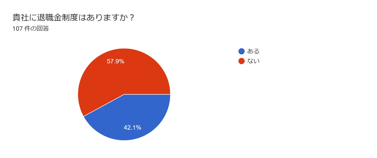 自社に退職金制度があると回答した経営者が、42.1%。自社には退職金制度がないと回答した経営者が57.9%という結果となった。