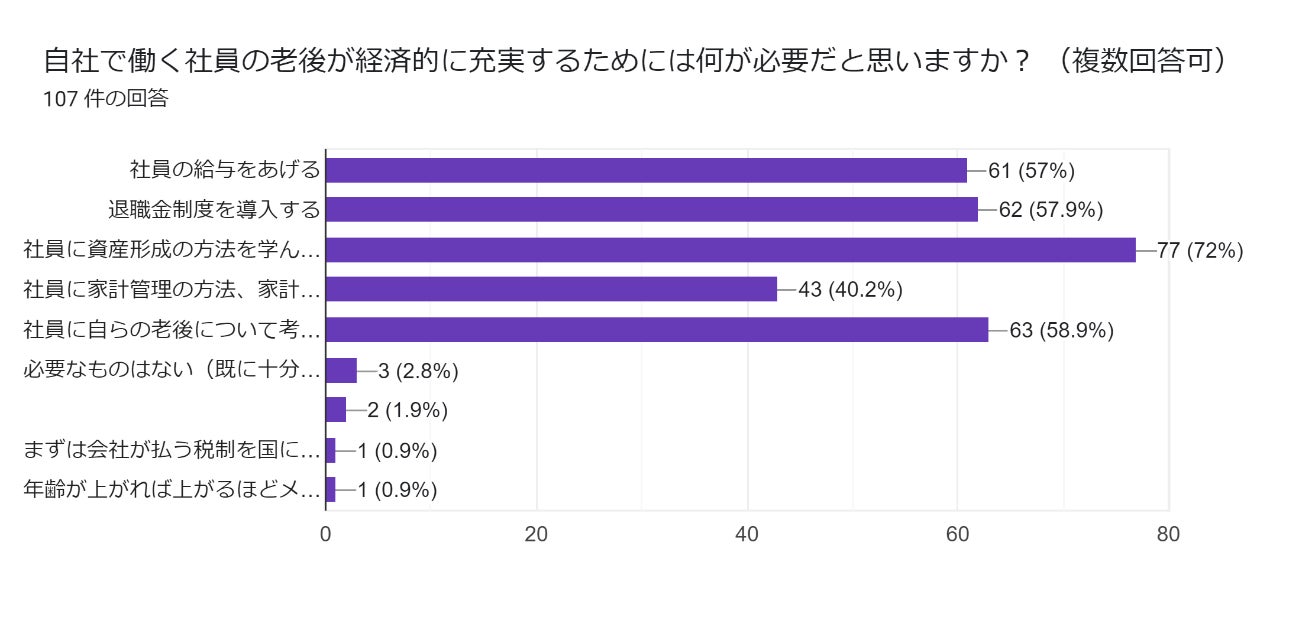 自社で働く社員の老後が経済的に充実するためには何が必要だと思いますか?(複数回答可)