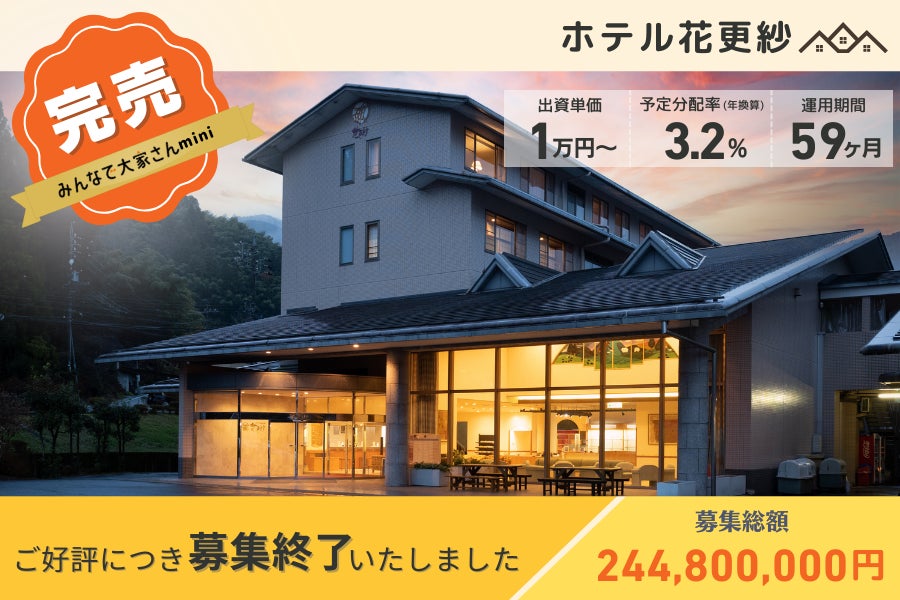 「みんなで大家さんmini」の第1号ファンド(募集総額:244,800,000円)として募集開始し、完売いたしました。