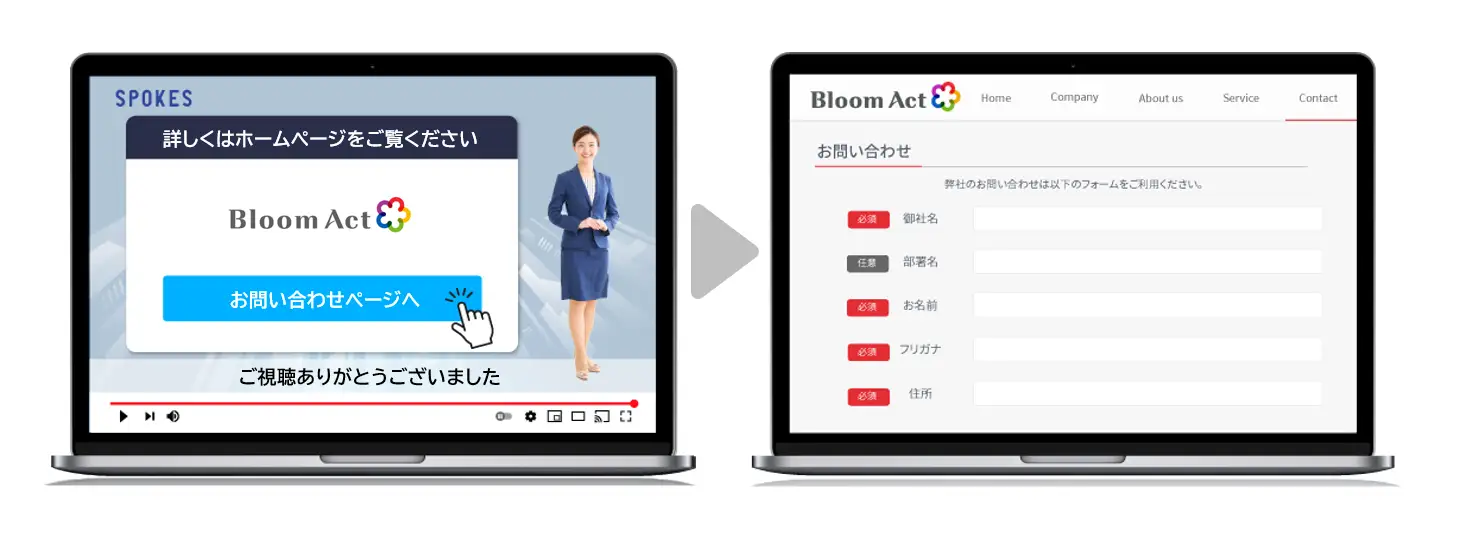 営業担当に代わって「しゃべる資料」がご案内。従来の資料を配布するだけでは伝わり難かったサービスの特徴や、ベネフィット、価格など、ユーザーに伝えたい情報を漏れなく正確に伝えることができます。