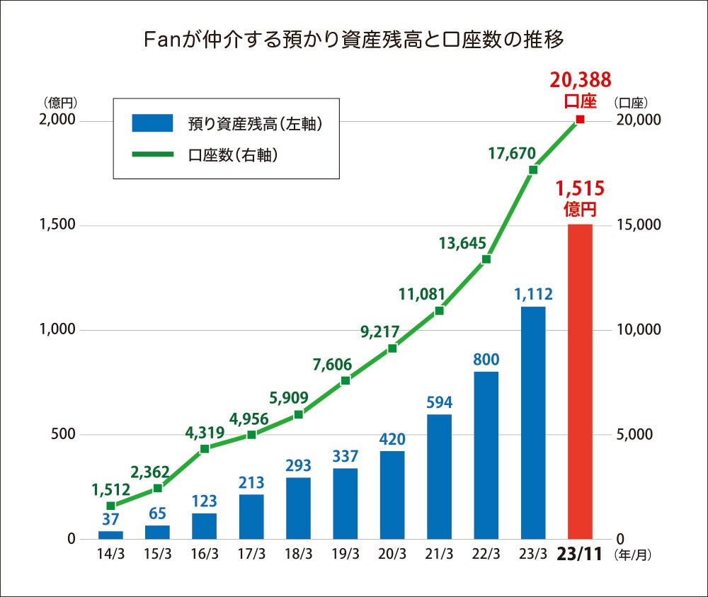 結果として、令和5年11月14日時点で、仲介口座数は延べ2万口座を突破、仲介する預かり資産残高は1,500億円を突破という、IFA業界ではトップクラスとなる実績を達成いたしました。