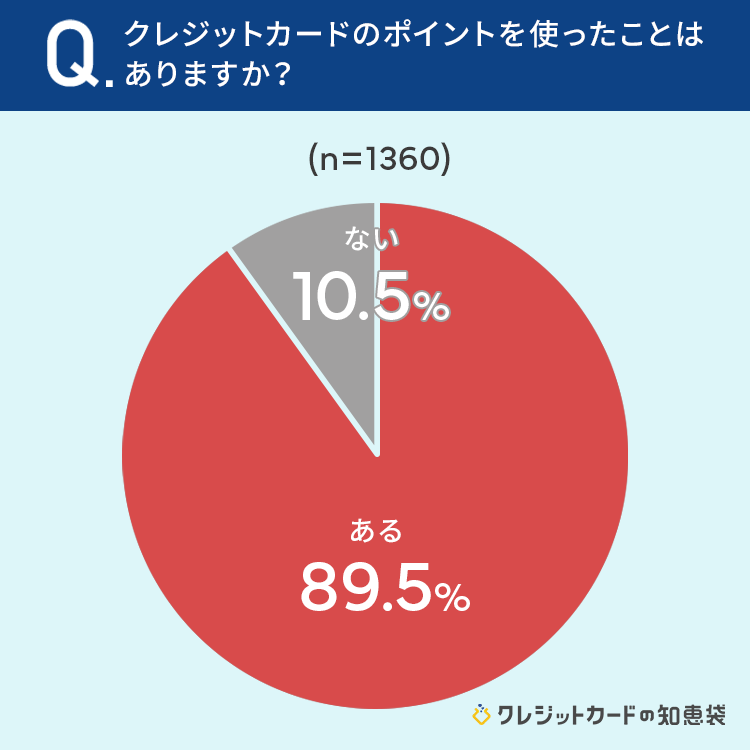 89.5%と、ほぼ9割の方が「クレジットカードのポイントを使ったことがある」と回答しています。