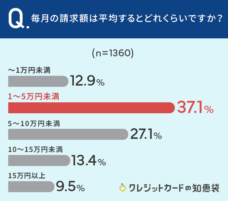 クレジットカードを持っている87.4%が「ネットショッピング」に利用していると回答しており、毎月の請求額は37.1%が「1~5万円未満」と回答しています。