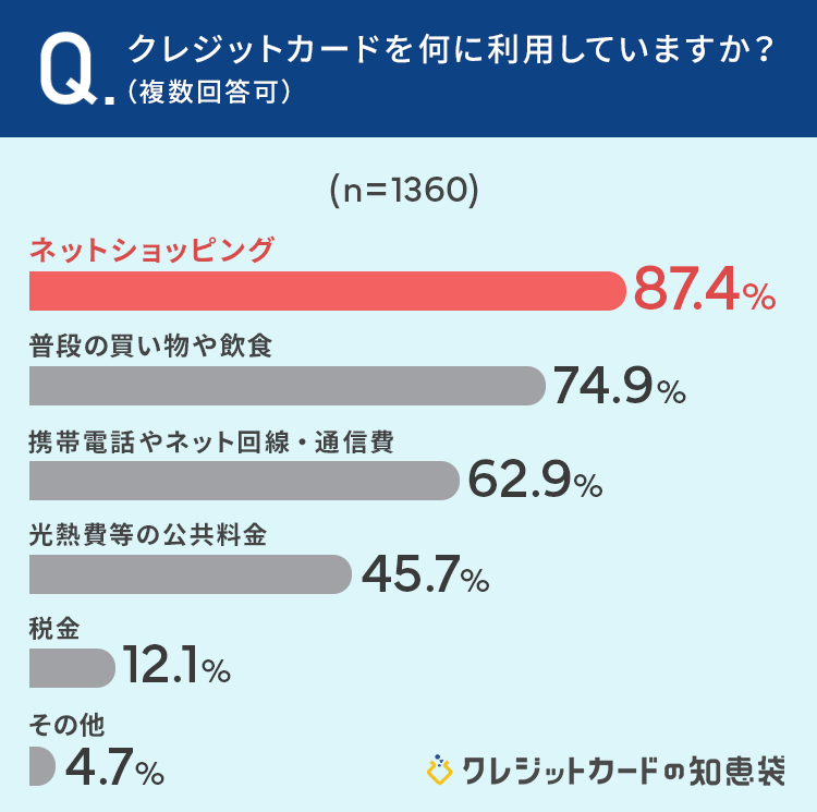 ■クレジットカードを持っている87.4%が「ネットショッピング」に利用している