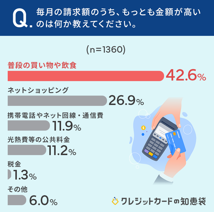 42.6%と、半数近くの方が「普段の買い物や飲食」がもっとも高いと回答しています。