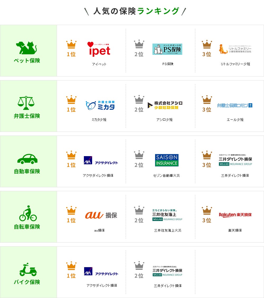 このページでは、当社運営保険メディア全体での契約件数に基づいたランキングをご紹介しています。