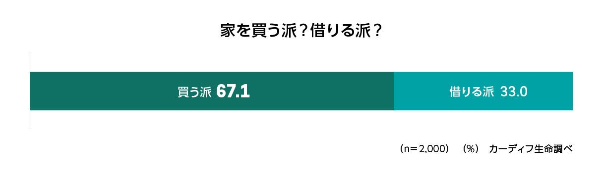 家を“買う派”、約7割。依然としてマイホームへの憧れは強いが、住宅ローン返済への不安を持つ人約5割