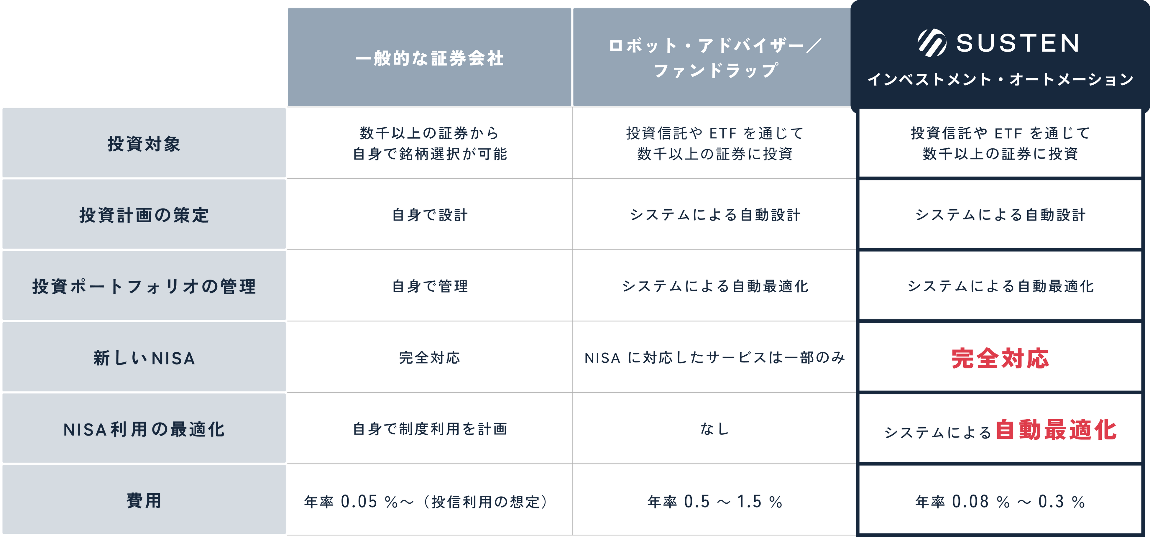 SUSTENでは、新しいNISAに全て自動で完全対応します。