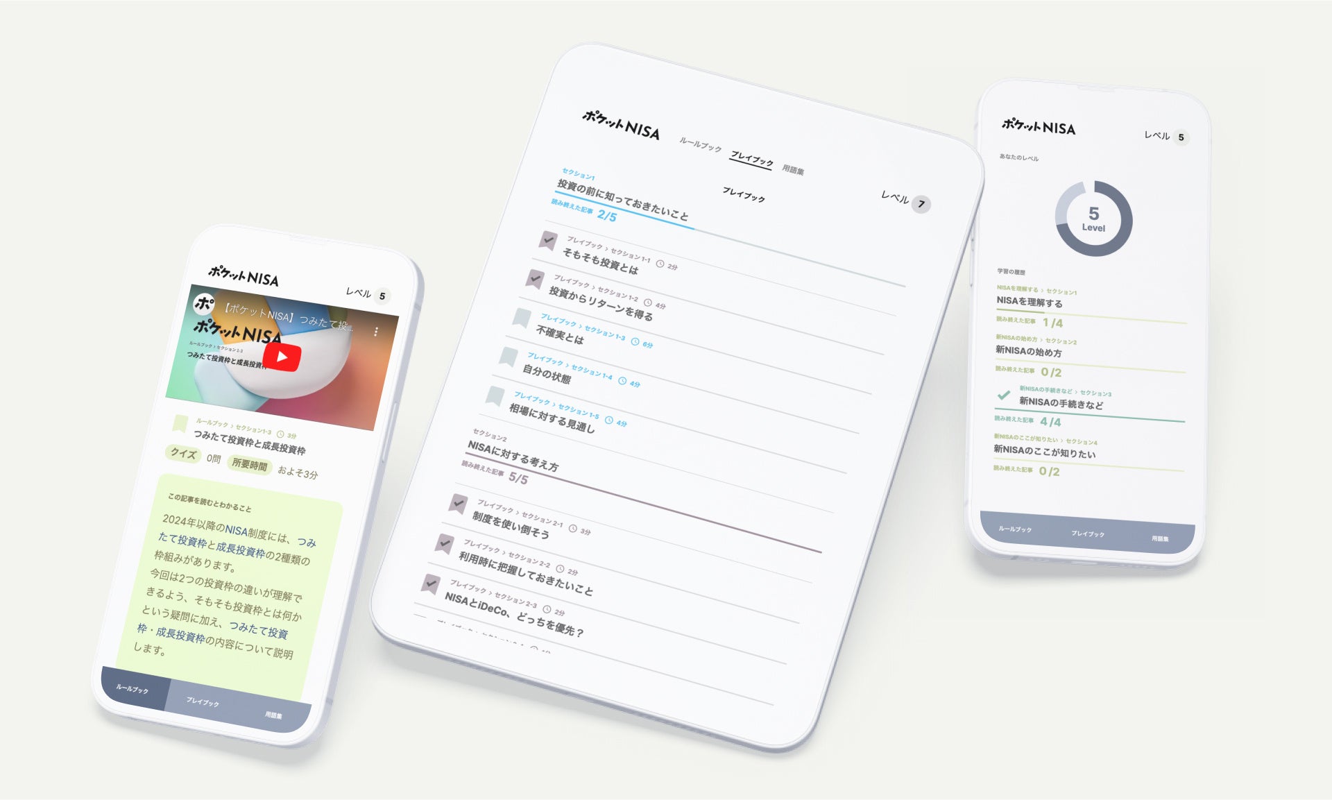 新NISAの活用方法についてクイズ形式で学ぶことができる『プレイブック』は、クリアする毎にレベルが上がっていく仕様になっており、ゲーム感覚で楽しく手軽にNISAの知識を習得することができます。今後新たなセクションの追加も予定しております。
