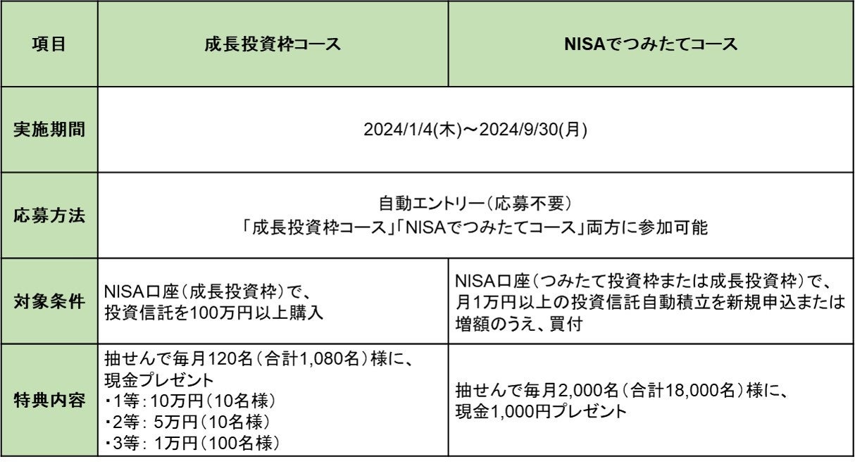 株式会社ゆうちょ銀行(東京都千代田区、取締役兼代表執行役社長 池田 憲人、以下「ゆうちょ銀行」)は、2024年から「新しいNISA」が始まることを受け、NISA口座をご利用いただいたお客さまを対象とした「新NISAスタートキャンペーン」を実施いたします。