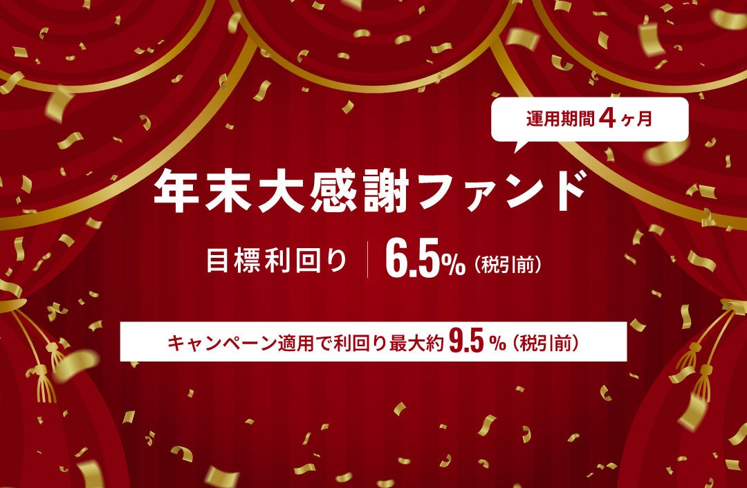※「目標利回り」とは、営業者から貸付先への貸付に係る貸付金利から営業者報酬を控除して算出した数値であり、投資金額に対する分配金合計額の割合(年率換算)とは異なります。