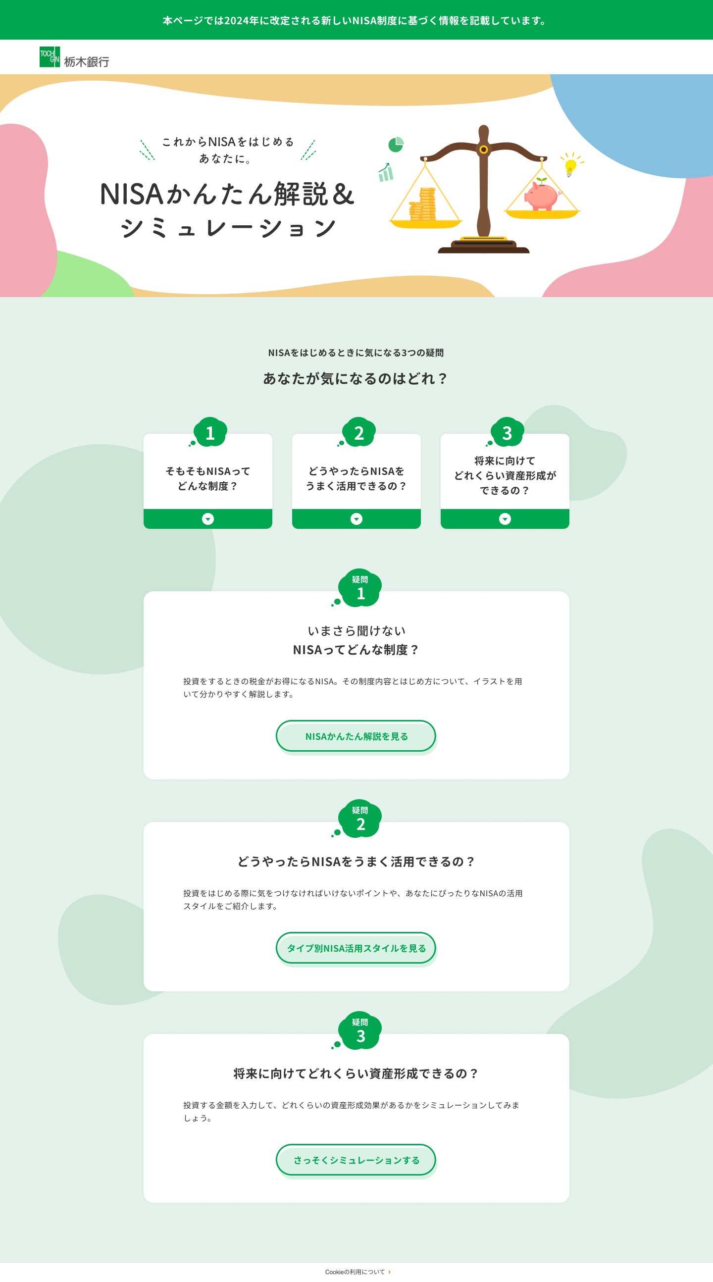 この度、栃木銀行に提供する『XIM-Contents』に、資産運用が初めての方も理解しやすいコンテンツとして、新NISA制度に関するページを追加します。新NISA制度についての解説ページでは、預貯金と投資の違いや、自分にあった新NISA制度の活用方法について、初心者にも理解しやすい文章で説明しています。また、シミュレーションページでは、積立金額や年数、希望の運用方法を入力するだけで、自分に合ったNISA活用プランをイメージすることができます。本コンテンツを通じて、新NISA制度に関心を持ったお客さまは、金融機関のページに遷移し、窓口へのお問い合わせや資料請求が可能です。