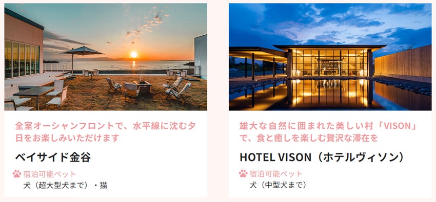 近年、ペットと旅行を楽しむ『ペットツーリズム』が注目されていますが、多くの飼い主さまが『ペットを連れて行くことに対する不安』や『ペットと泊まれる宿を見つけにくい』といった課題を抱えています。当社は、これらの課題に対し、飼い主さまとペットが安心して旅行ができる機会を促進すべく『ペットと泊まれる宿 無料招待キャンペーン』を実施します。12月・1月のキャンペーンでは、飼い主さまとペットが快適に過ごせる宿泊施設を2つご用意しました。このキャンペーンを通じて、ペットとの旅行がより身近なものとなり、ペットと共に生活する皆さまの課題解決に寄与することを目指します。