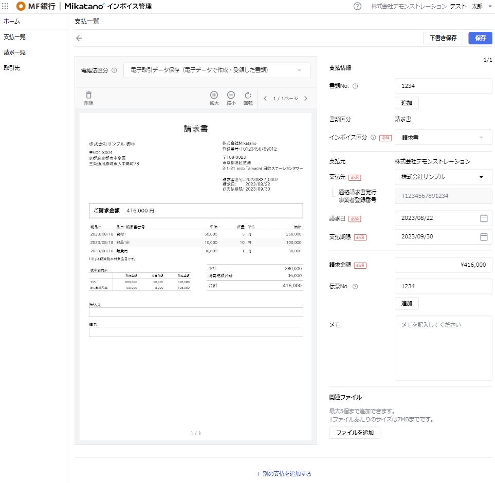 請求書の画像情報を保存・表示する機能 等