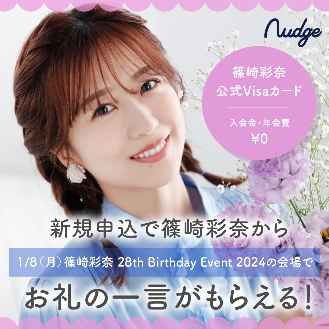 2024年1月8日(月)に28歳の誕生日を迎える篠崎彩奈さんの生誕祭イベントにて、ナッジカードの篠崎彩奈クラブ会員様限定で、篠崎さん本人から一言メッセージをもらえる企画(※)を実施いたします。