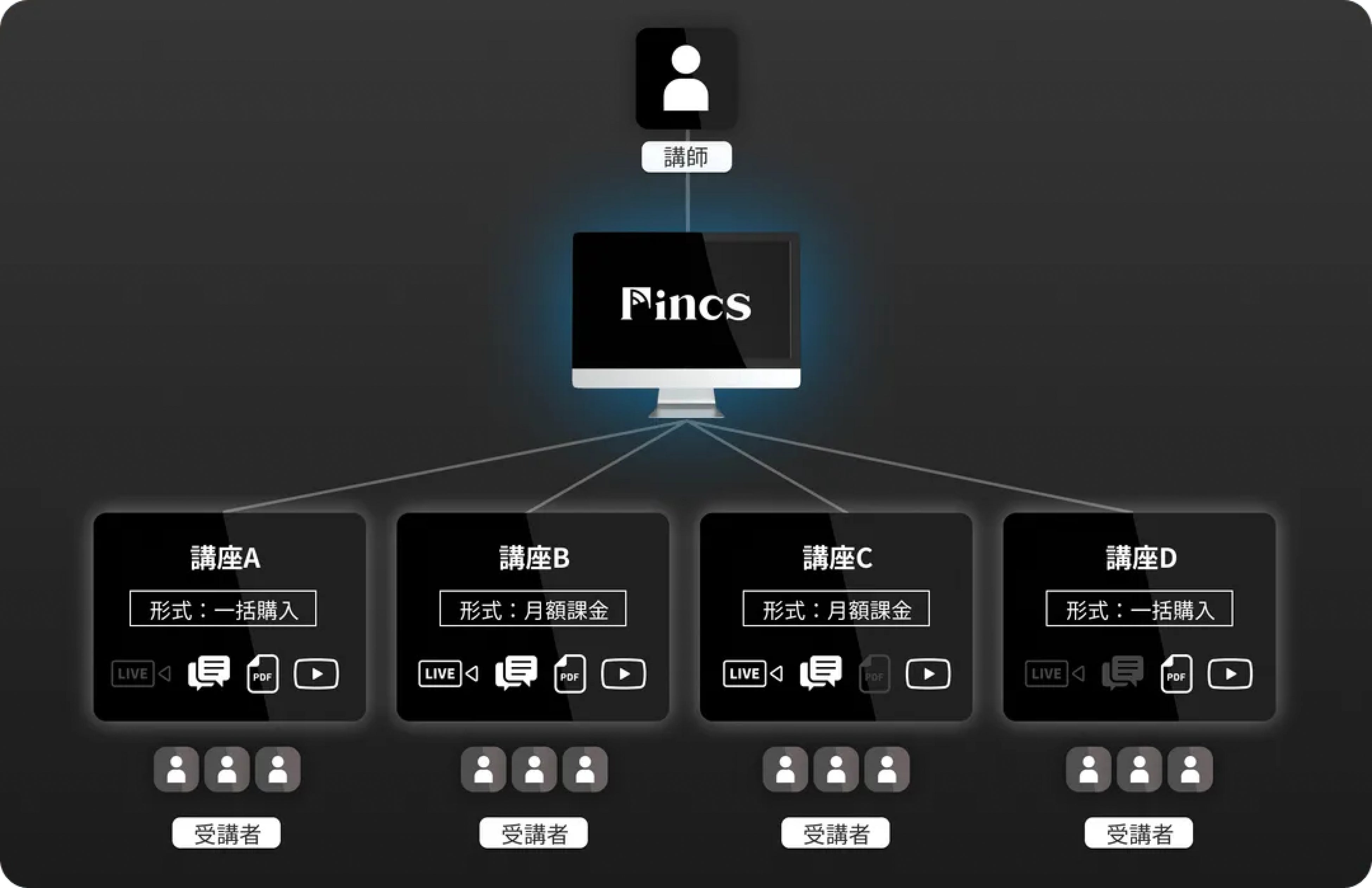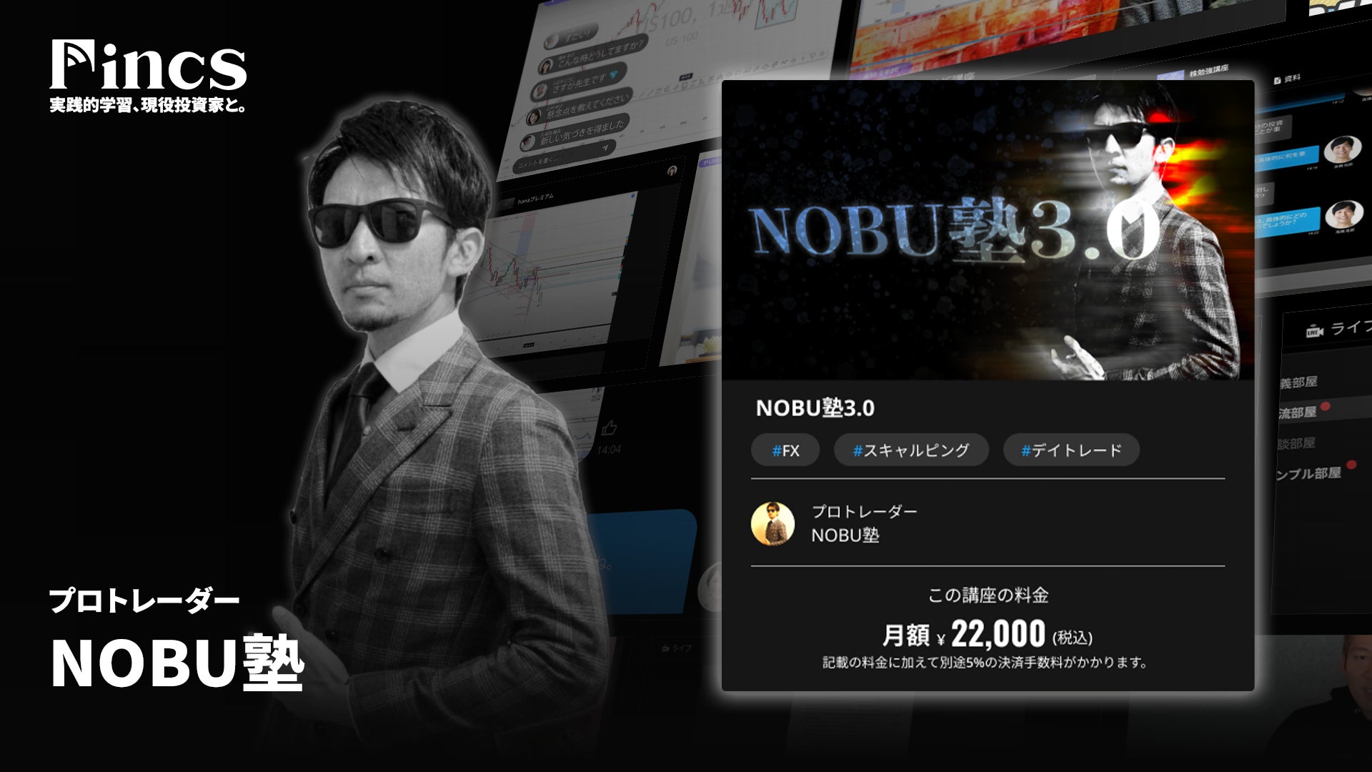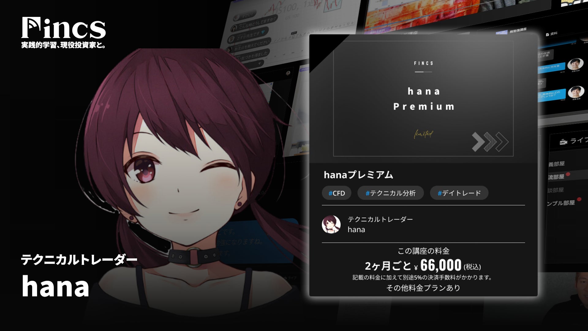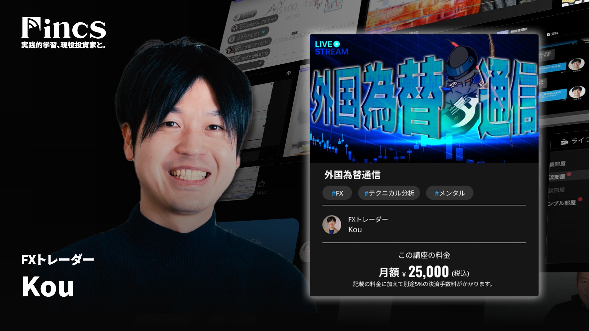 より積極的な投資を求める方々へ。Fincsは現役投資家の知見を活かし、ライブ配信、動画教材、チャットトーク、専門資料の提供を通じて、深い知識と実践的な学びを提供する学習プラットフォームです。