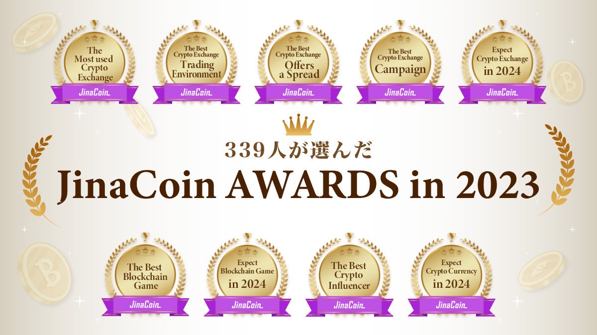 株式会社jaybe(本社:香川県高松市)が運営する暗号資産(仮想通貨 ※以下、「仮想通貨」と称する)メディア「JinaCoin(ジナコイン)」は28日、2023年に活躍した仮想通貨取引所やインフルエンサー、ブロックチェーンゲーム(NFTゲーム)などを称える賞「JinaCoin AWARDS in 2023(ジナコイン・アワード 2023)」を発表しました。