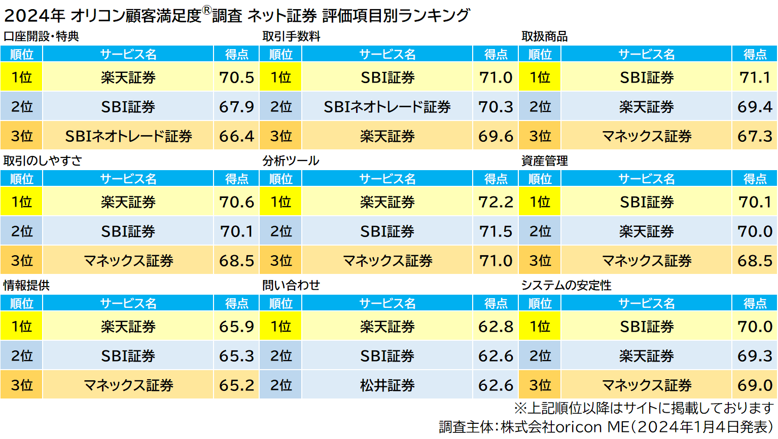 ■【SBI証券】と【楽天証券】が同点で総合1位