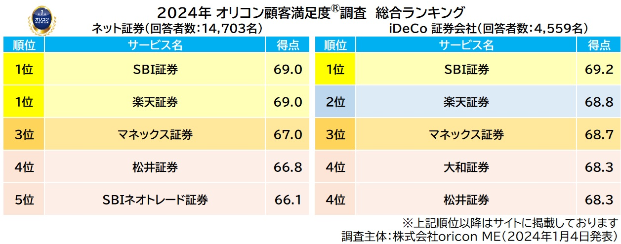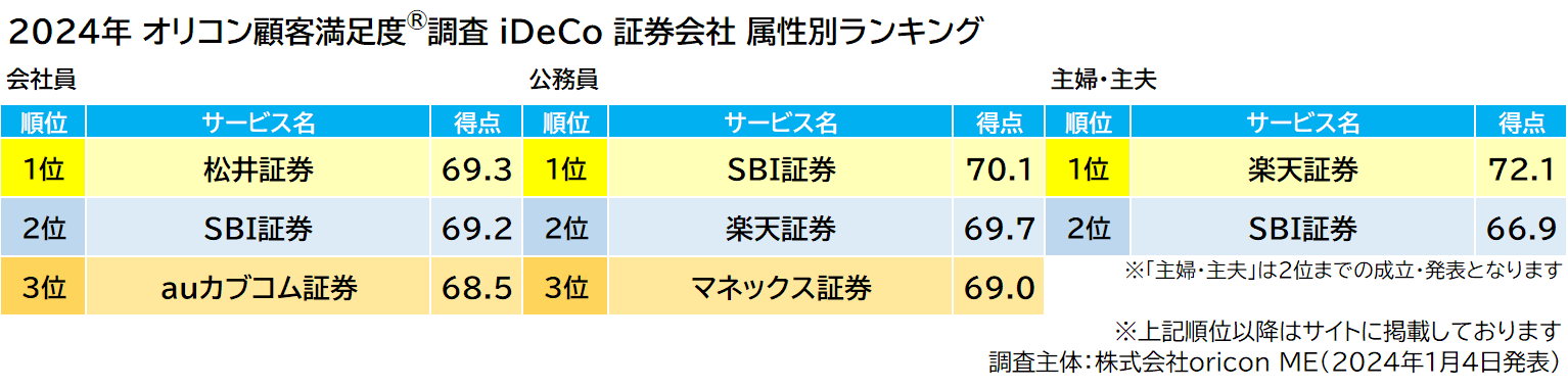 (結果の詳細は、https://life.oricon.co.jp/rank-ideco/securities/ よりご確認ください。)