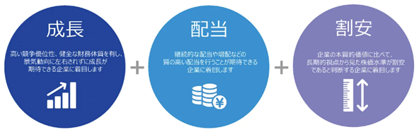 世界のベストは、世界の株式の中から、「株式投資の王道」である「成長+配当+割安」にこだわって“世界のベスト”に厳選投資する世界株式ファンドです。