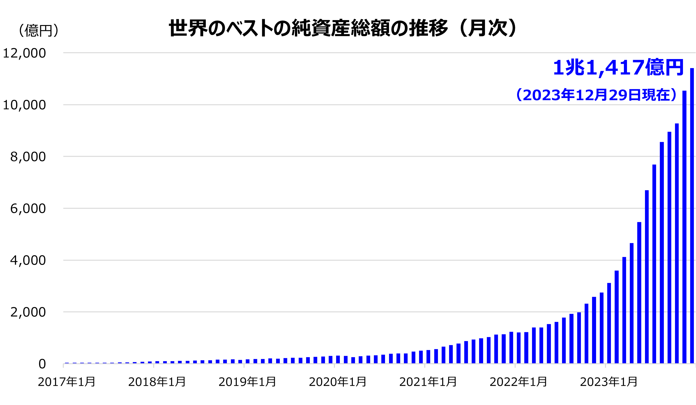 2023年12月31日時点において世界のベストは、6ファンド合計で1兆1,417億円の純資産総額*2となりました。