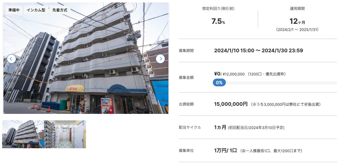 明治株式会社が運営する不動産クラウドファンディング「くじらファンディング」は、2024年1月10日より、くじら5号の販売と合わせて、出資額に応じたキャッシュバックキャンペーンを開始いたします。
