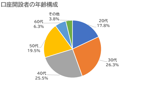 新規にFX口座を開設した投資家は、30代が26.3%、40代が25.5%で、この2つの年代が半数以上を占めた。以下、50代が19.5%、20代が17.8%と続いた。