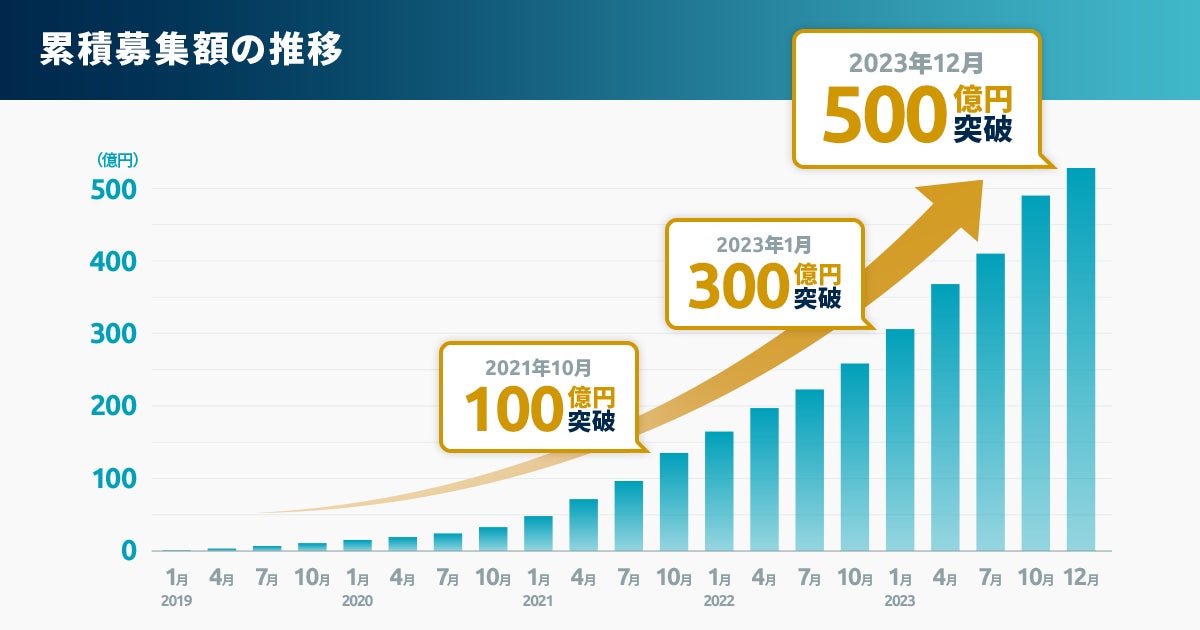 投資家の皆さまには新たな資産形成の選択肢の一つとして固定利回りの資産運用のFundsをご利用いただき、おかげさまで累計の募集額が500億円を突破しました。また、2023年は新たにイオン銀行やみんなの銀行との連携開始により販売網の拡大も行い、会員登録者数も10万人を突破いたしました。
