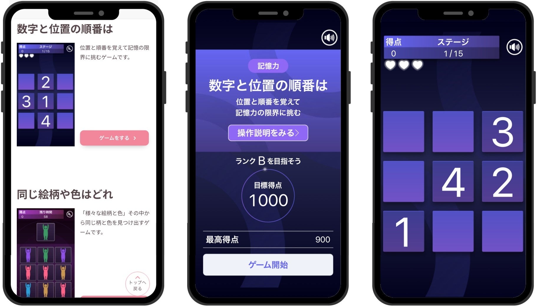 「ブレインワークアウト」は&eアプリ内で利用できるゲーム感覚で脳を鍛えるコンテンツで、1回のゲームは約1分で完了します。「考える、記憶する、判断する」ことで脳へ刺激・活性化を促すことはWHOのガイドラインで推奨されております。※1。