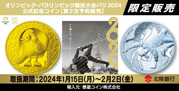ほくほくフィナンシャルグループの北陸銀行(頭取 中澤 宏)は、2024年1月15日(月)から「オリンピック・パラリンピック競技大会(パリ/2024)公式記念コイン」の第2次予約販売をいたしますので、下記のとおりご案内申しあげます。