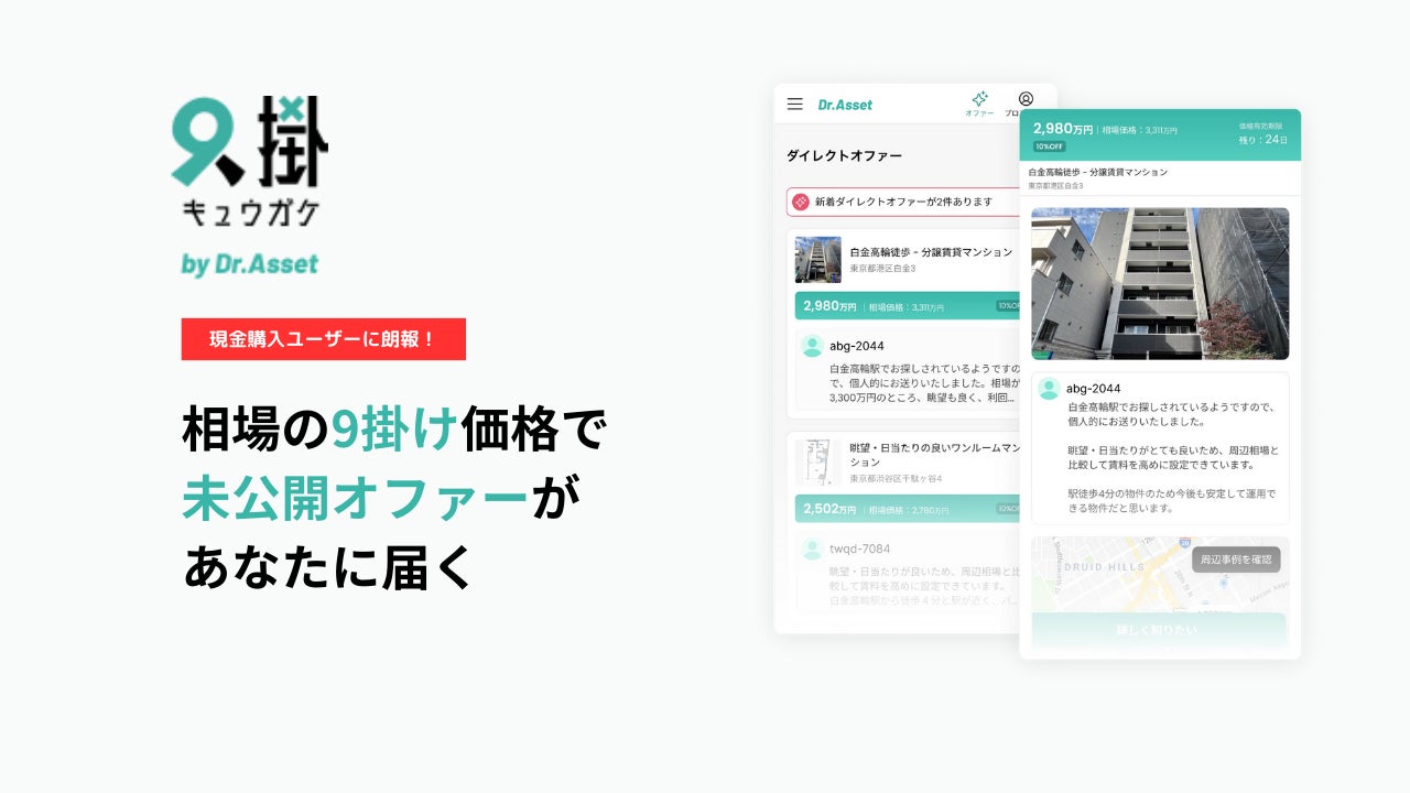 AIによるビッグデータ解析を強みとし、不動産の価格査定や物件情報配信など不動産テックソリューションを開発するエステートテクノロジーズ株式会社(本社:東京都渋谷区、代表取締役:澤 博史)は、お得な不動産取引の機会を創出するプラットフォームサービス「キュウガケ」を提供しています。