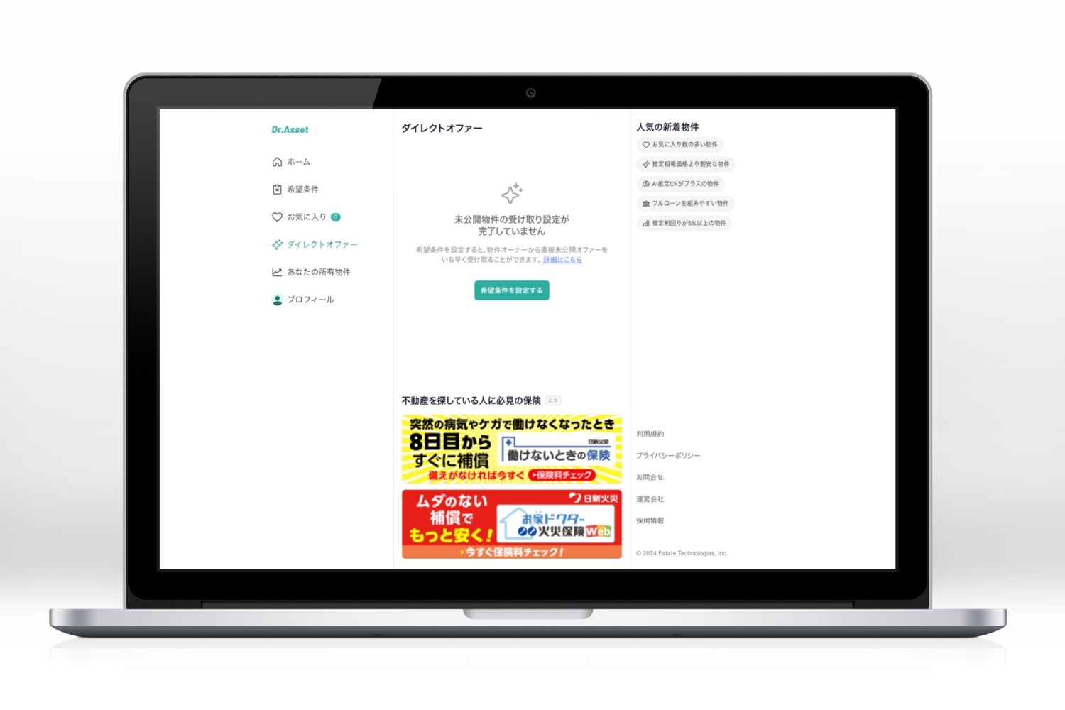 なお、エステートテクノロジーズでは不動産投資・不動産売却・購入に関心の高い会員プラットフォームを運営しています。今後も、弊社プラットフォーム会員様のサービス向上を前提に、会員様と親和性の高いサービスがございましたら広告掲載をはじめとした業務提携について積極的に検討していく予定です。