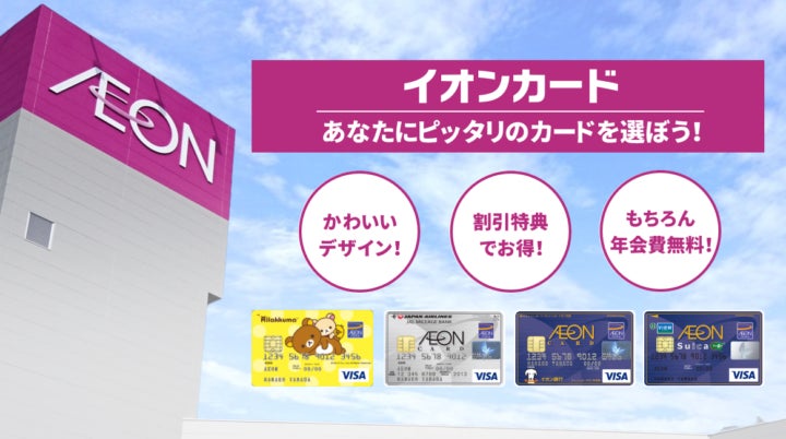 イオンカードは年会費無料で使えるクレジットカードというだけではなく、提携カードを含めると50種類以上あるそれぞれのカード毎に違った「特典」を持つという特徴があります。